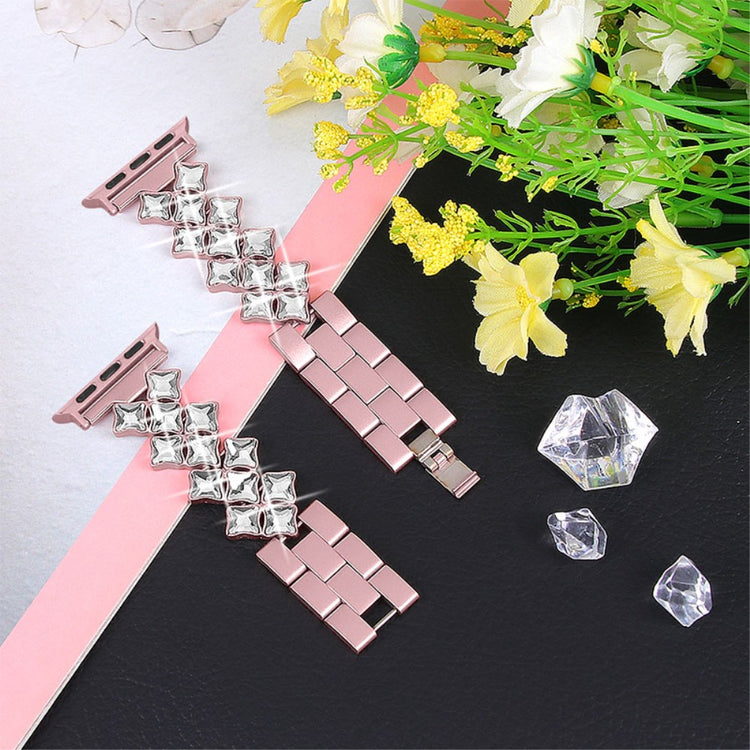 Meget skøn Apple Watch Series 7 41mm Metal og Rhinsten Rem - Pink#serie_1