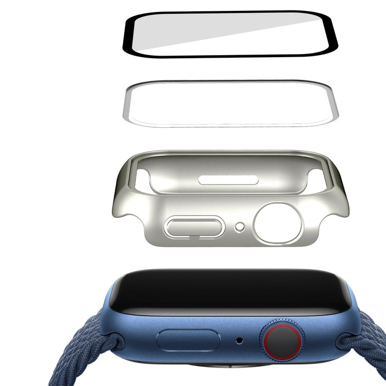 Vildt Godt Apple Watch Series 7 41mm Cover med Skærmbeskytter i Plastik og Hærdet Glas - Sølv#serie_6