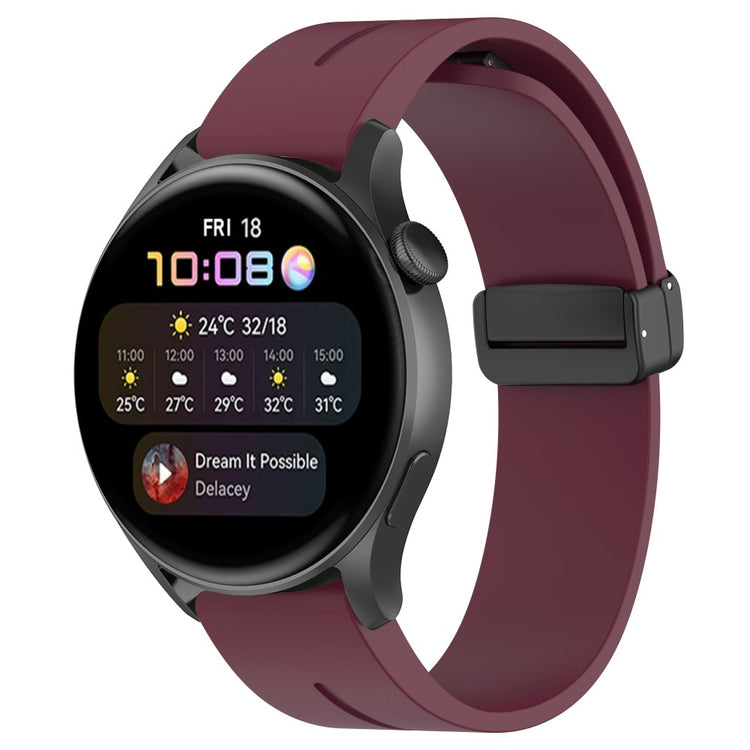 Huawei Watch GT 4 46mm / Samsung Galaxy Watch3 45mm / Garmin Venu 3 Black Buckle Watchband 22mm Magnetic Silicone Strap - Wine Red#serie_8