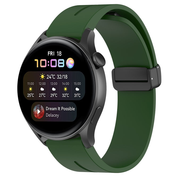 Huawei Watch GT 4 46mm / Samsung Galaxy Watch3 45mm / Garmin Venu 3 Black Buckle Watchband 22mm Magnetic Silicone Strap - Army Green#serie_9