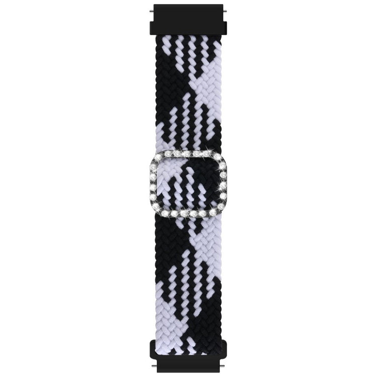 20mm Universal nylon + rhinestone buckle watch strap - Black and White#serie_7